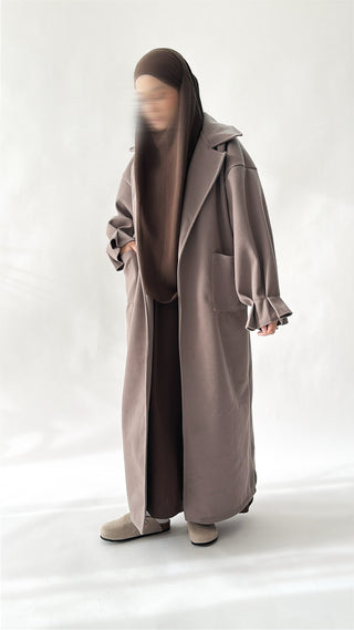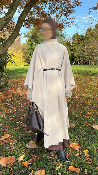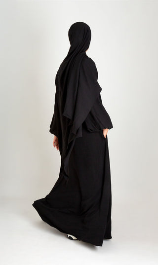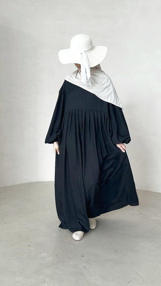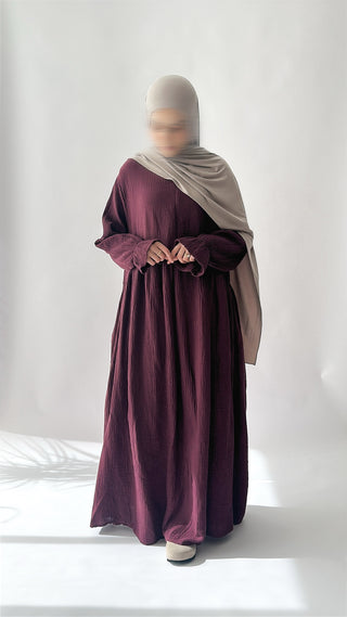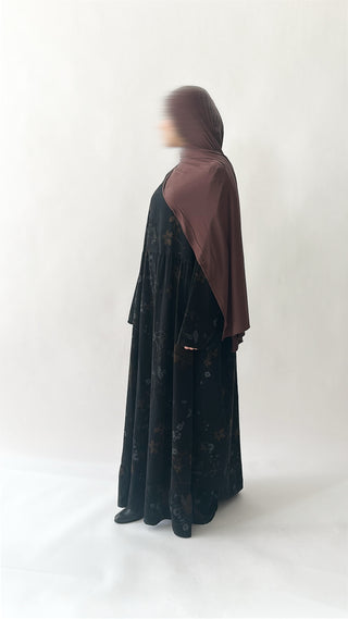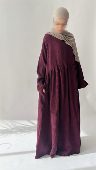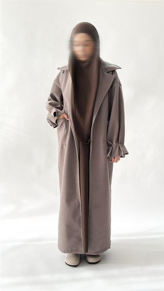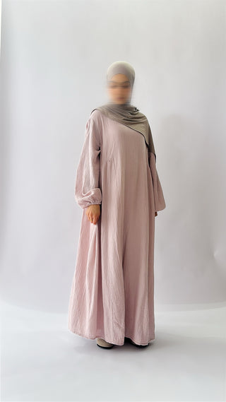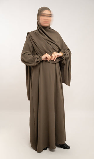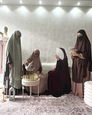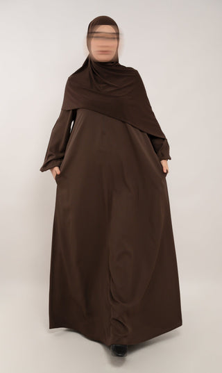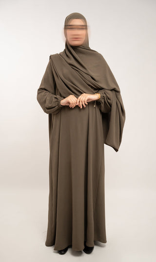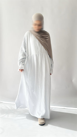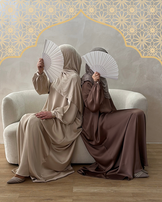 Entdecke die perfekte Mischung aus Komfort und Stil mit unserer Natural Abaya "Nila". Kombiniere mit dem passenden Khimar für maximalen Tragekomfort.
