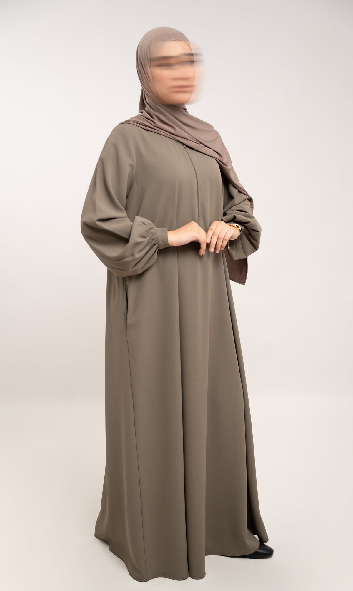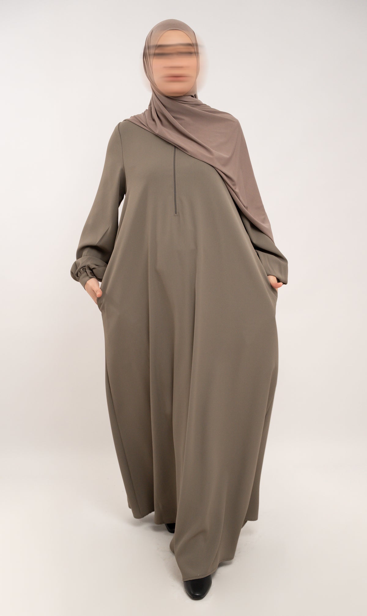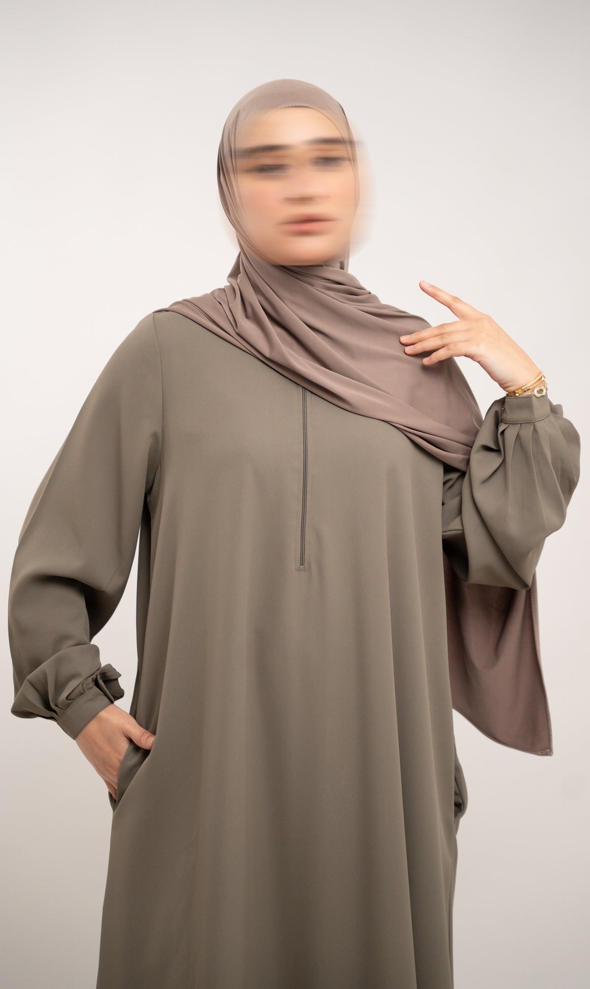 Deine perfekte to go Abaya! Das Material dieser ist von durchschnittlicher Dicke (bietet auch bei Wind guten Schutz) und fühlt sich fest an. Der Stoff knittert nur mäßig bis gar nicht.