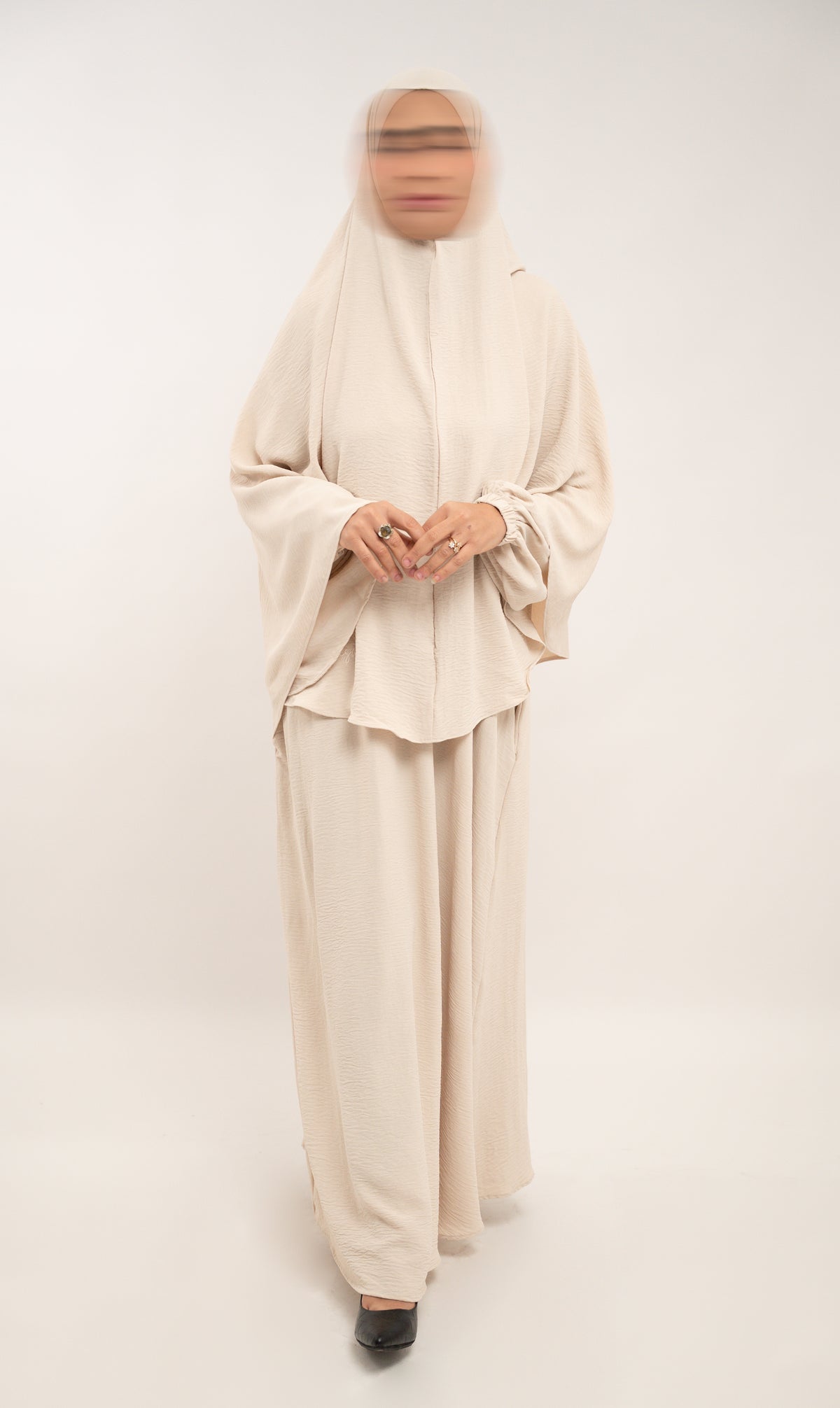 Größenhinweis: Bitte die Größentabelle beachten! Das Model auf dem Foto trägt die Abaya in Größe Small. Sie trägt normalerweise EU-Größe 38 und ist 170 cm groß.