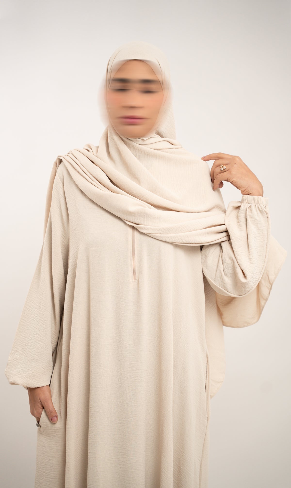 Das Design hat einen Reißverschluss an der Brust, so dass es zum Stillen geeignet ist. Die Ärmel sind gepufft (Ballon) und an den Handgelenken wurde Gummizug gewählt. Dieses Design gehört zur Boutique-Kollektion der bekannten Marke Umm Sarah Wear - Modest Fashion (gute Passform und hochwertige Verarbeitung).