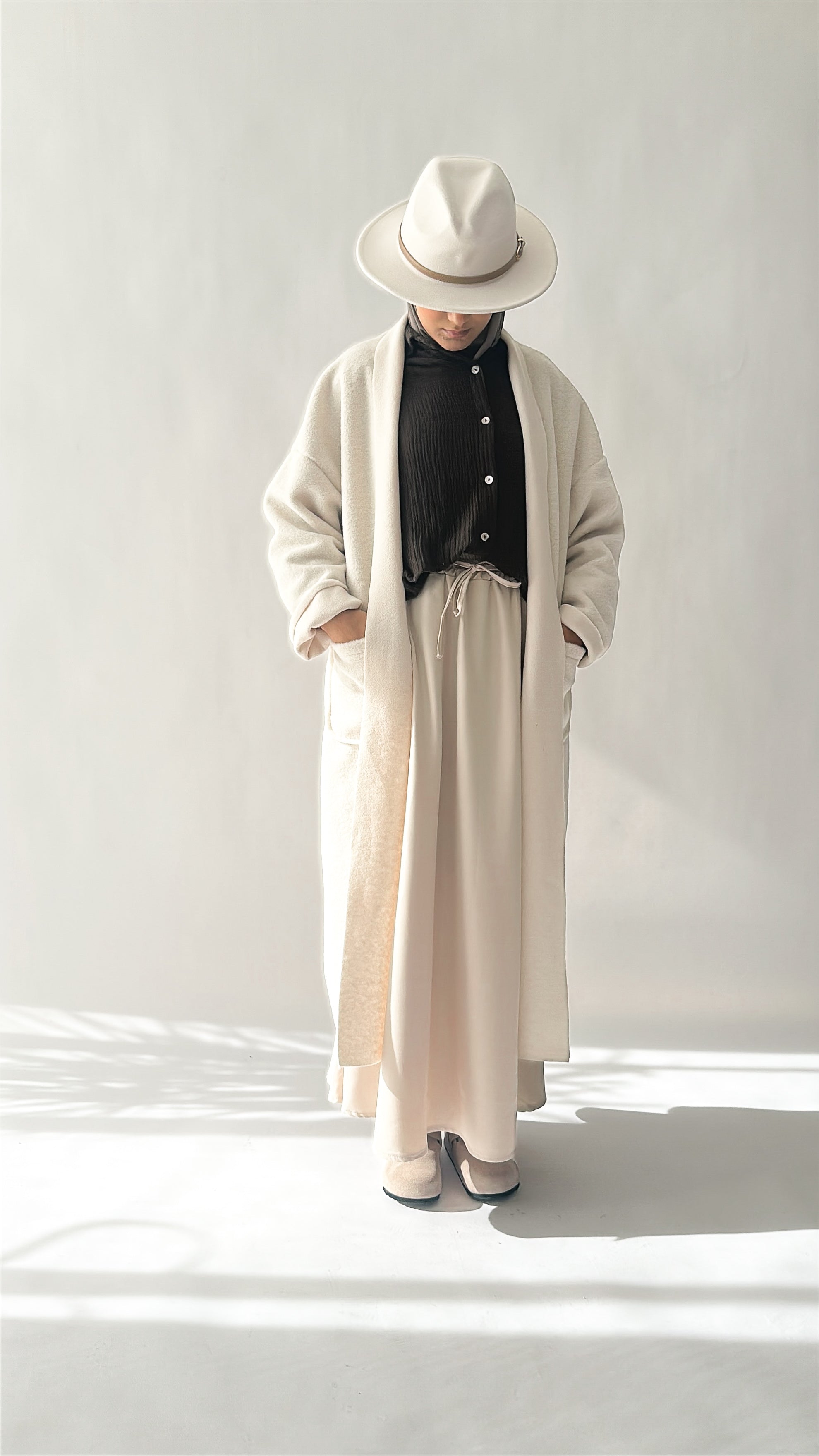 Dieser Mantel überzeugt mit seinem weichen, fleeceartigen Material und einem zeitlosen Design – perfekt für kühle Herbsttage und gemütliche Looks. Mit einer Länge von ca. 120 cm bietet er nicht nur angenehme Wärme, sondern auch eine schmeichelhafte Silhouette.