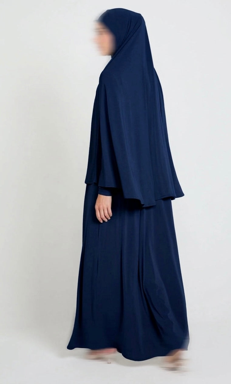 Unser zweiteiliges Jersey Set bestehend aus Abaya und Khimar vereint Komfort, Funktionalität, schlichte Eleganz und optimale Bedeckung. Dank des angenehm leichten Materials ist es besonders atmungsaktiv und somit perfekt für warme Sommertage geeignet.